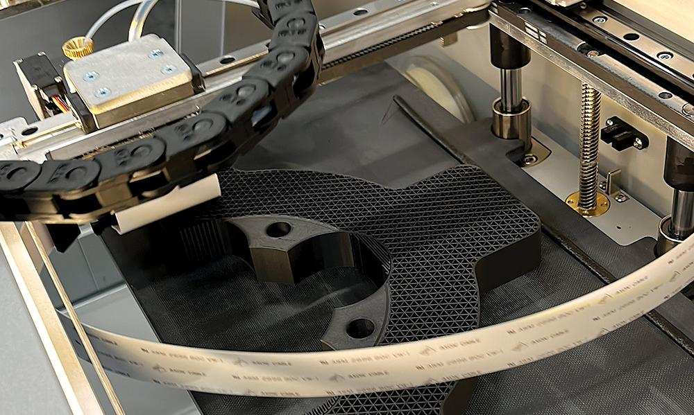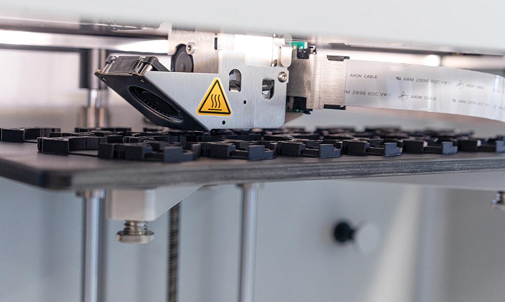 Our services include the use of the award-winning Mark Two, a professional carbon fibre composite printer built around the Continuous Fibre Reinforcement (CFR) process to reliably produce strong, durable objects. With its aluminium unibody frame, the Mark Two ensures high accuracy and repeatability, while the hardened extrusion system allows us to print Onyx – a micro carbon fibre-filled nylon filament – reliably over thousands of print hours.